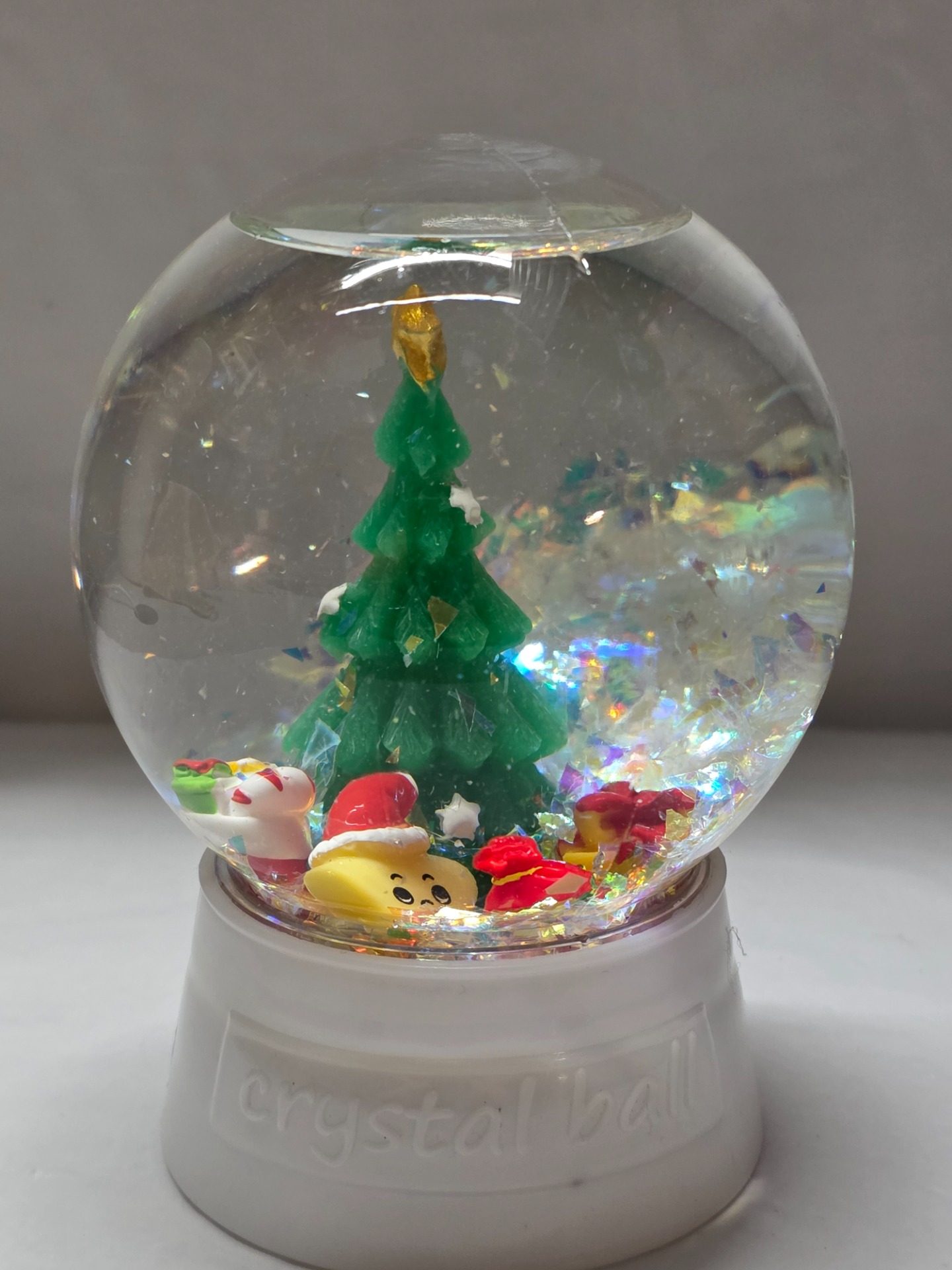 These are plastic snow globes. They are made with water, clear glue, faux snow and figurines. Shake and enjoy. They stand 4.25 inches.
