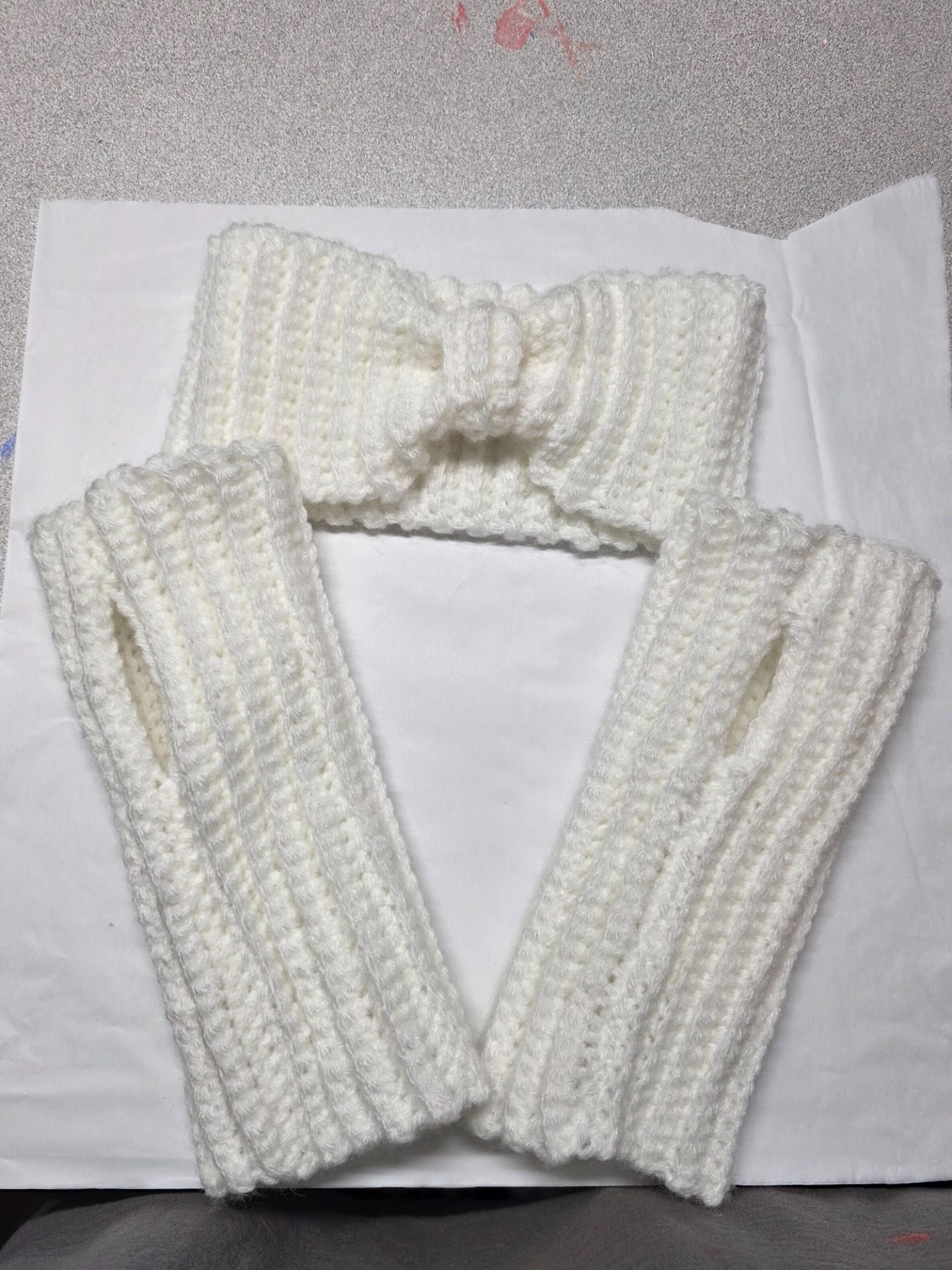 These are made with 100% acrylic yarn. Hand warmers have a slot for you to put your thumb through, and fingers will be exposed.