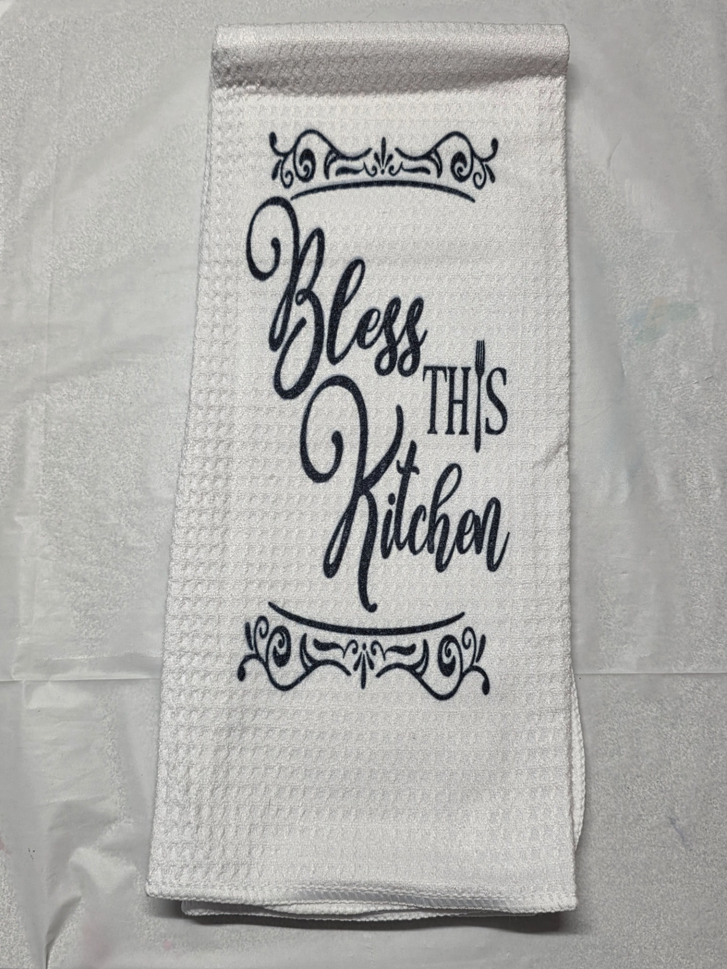This is a 100% cotton waffle kitchen towel made with sublimation ink.