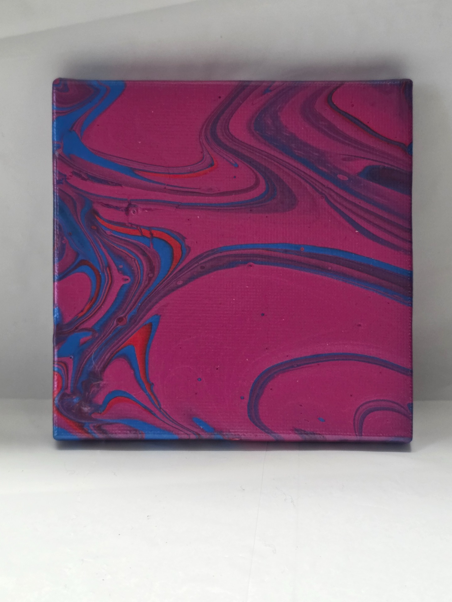 There are some mistakes on it but still useable. This made on a canvas and acrylic paint was used. The measurements are 3.75X3.75.